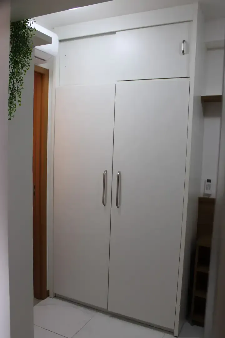 Apartamento de 1 quarto com varanda e 1 vaga privativa totalmente equipado e decorado.